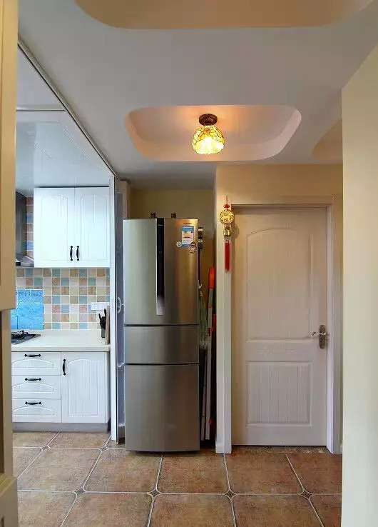 進(jìn)門的玄關(guān),做了一個(gè)很大的鞋柜,冰箱放在了對(duì)門的位置,量房熱線:0551-63732980
