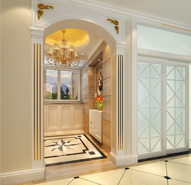 (9)內(nèi)外玄關(guān)華麗大方,對于空間較大的居室玄關(guān)大可處理得豪華、大方。